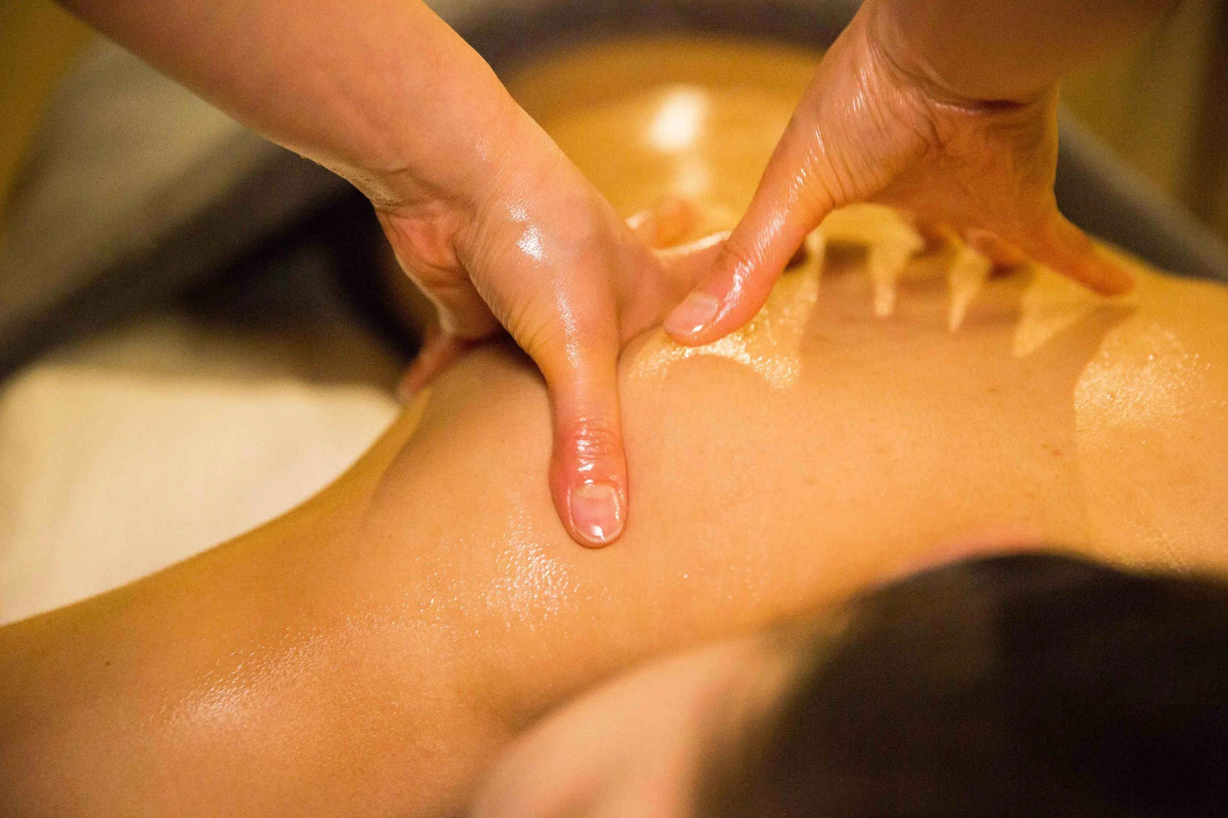 使用芳香精油,针对全身背面进行细致施术,涵盖头部、颈部、肩部、背部、臀部、腋下以及小腿等部位。