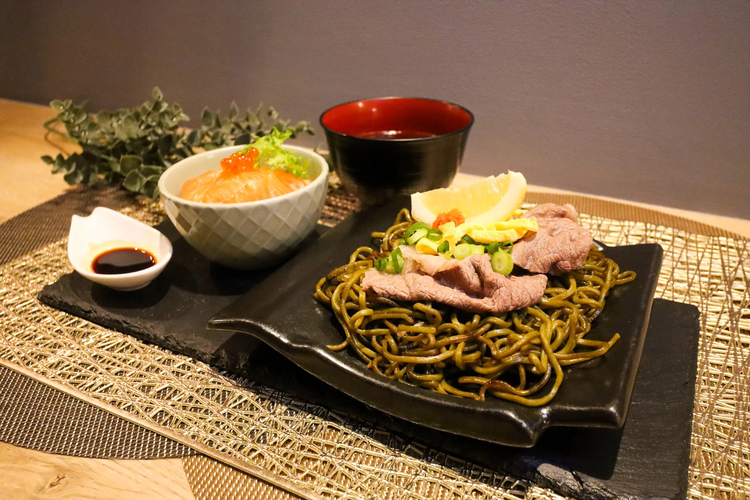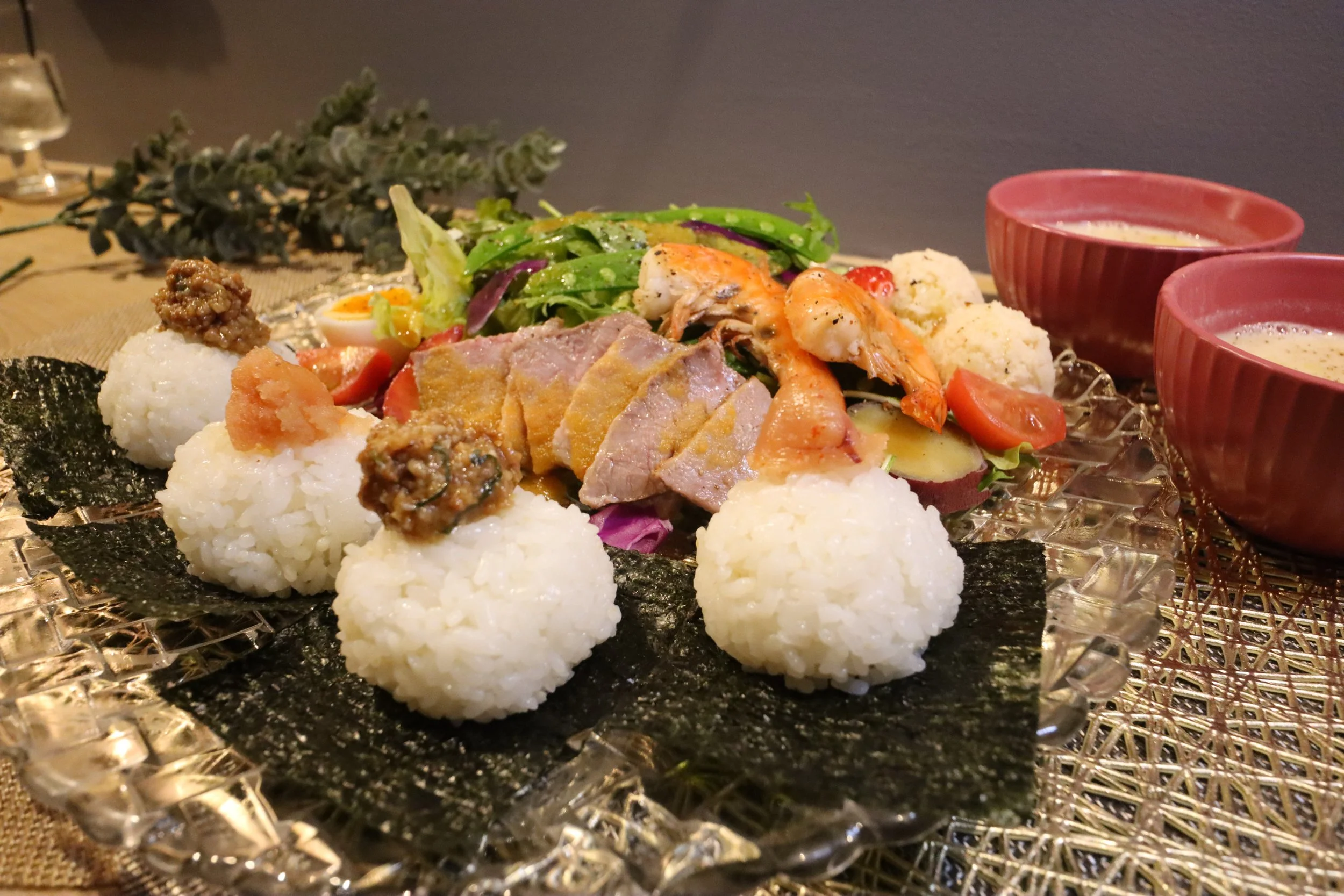 霜降和牛烤肉和虾仁沙拉拼盘套餐