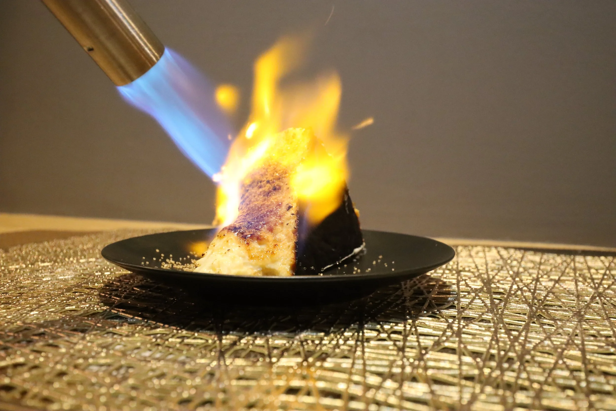 柔软得像要融化的巴斯克奶酪蛋糕,当面用火炙烤完成。