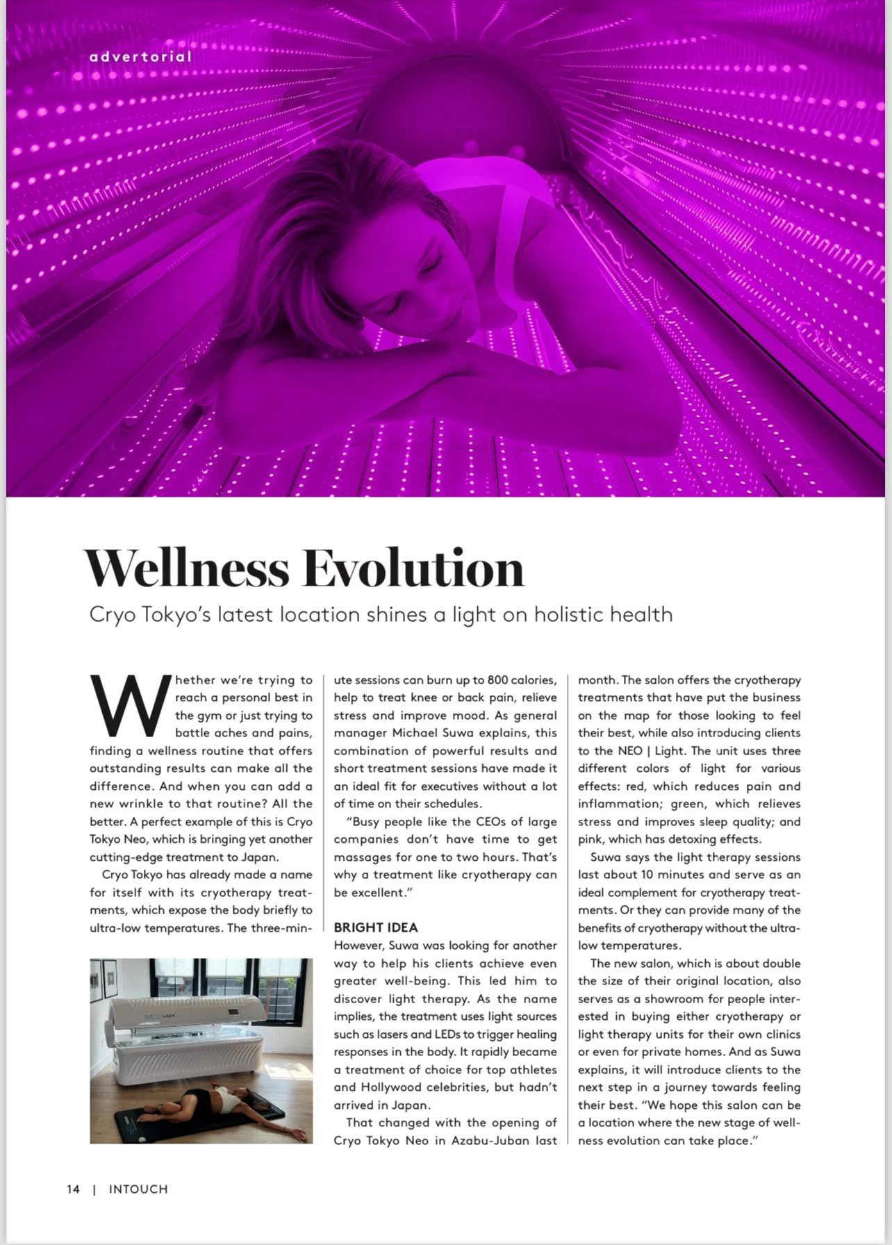 The set menu of NEO light and the latest American-made cryosauna is available only at ℃RYO TOKYO NEO® in Azabujuban, Minato-ku, Tokyo.