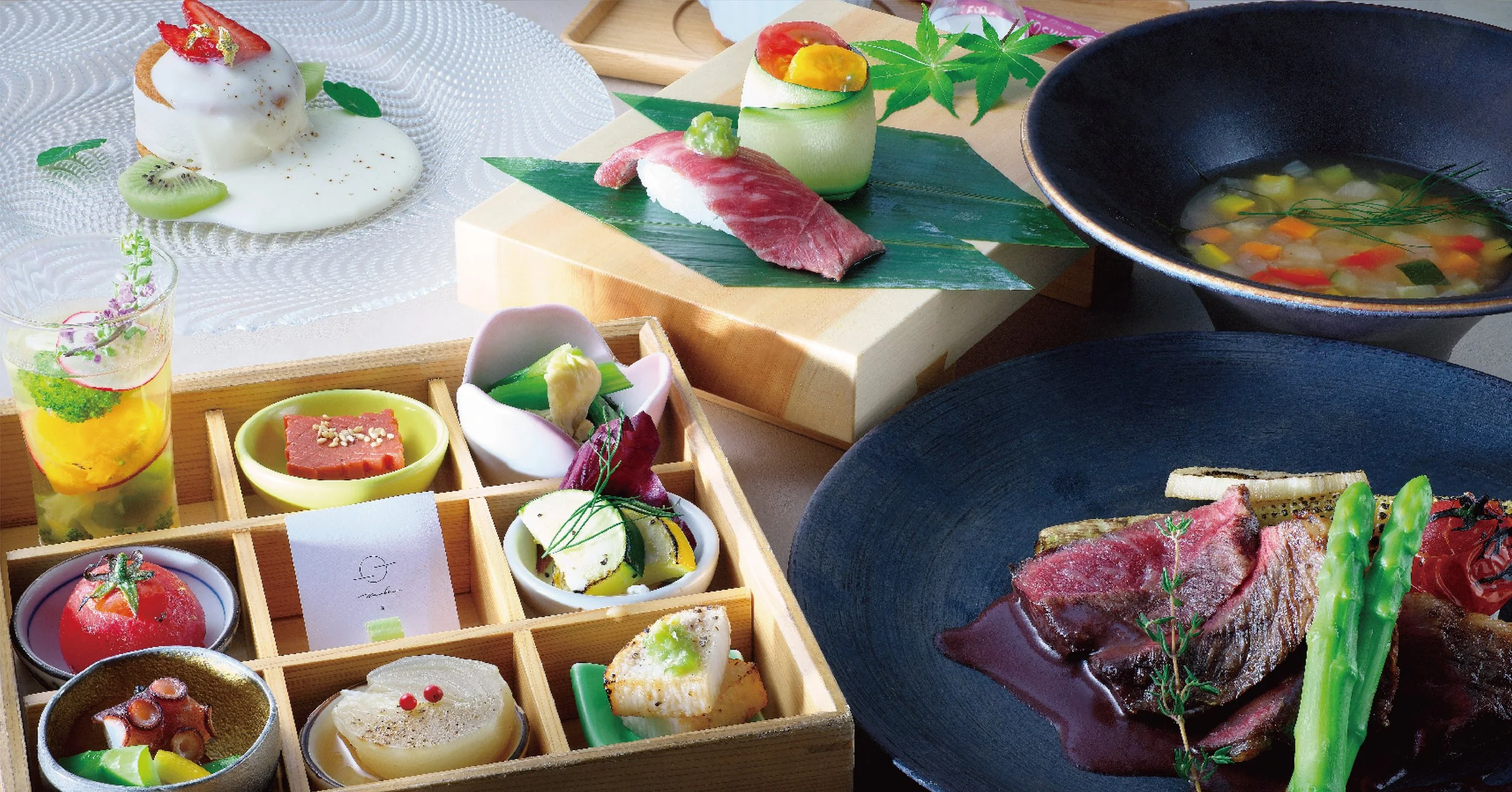 Kobe beef steak is the main dish of this course, which allows you to enjoy Japanese and Western cuisine with all five senses.