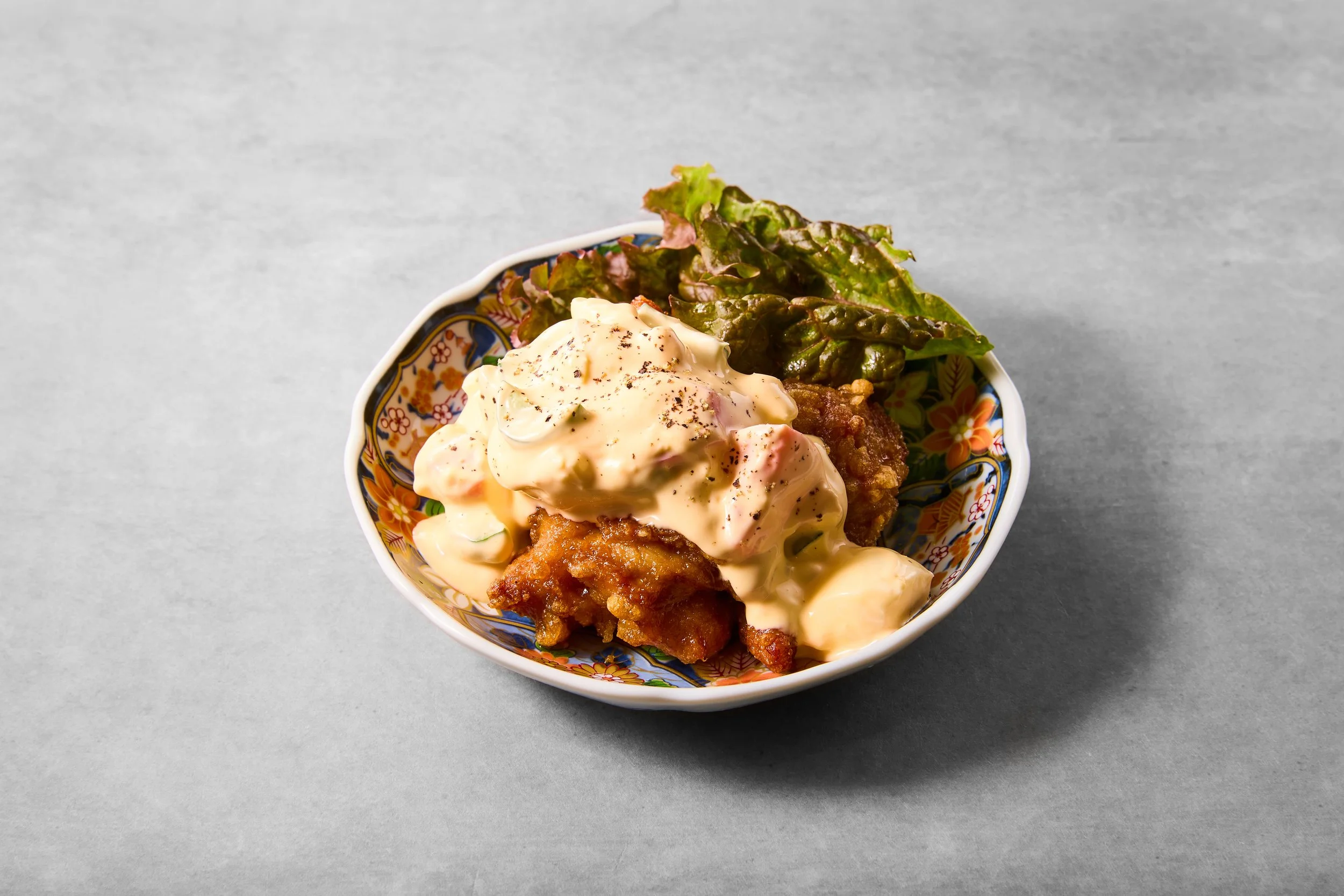 Fried chicken thighs dipped in nanban sauce and served with tartar sauce