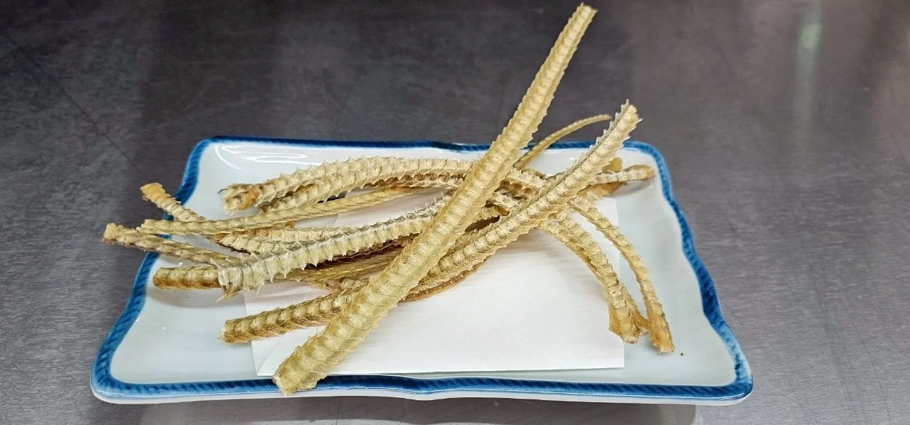 Crisp and savory bone crackers made from Samurai Eel. Lightly fried for a crunchy texture and rich flavor, packed with calcium. Perfect as a snack with drinks or a healthy treat for children.