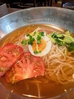 它与韩国冷面不同...与中华凉面也不同...它是清爽的盛冈冷面!不含荞麦粉,对荞麦过敏的人也可以放心享用!