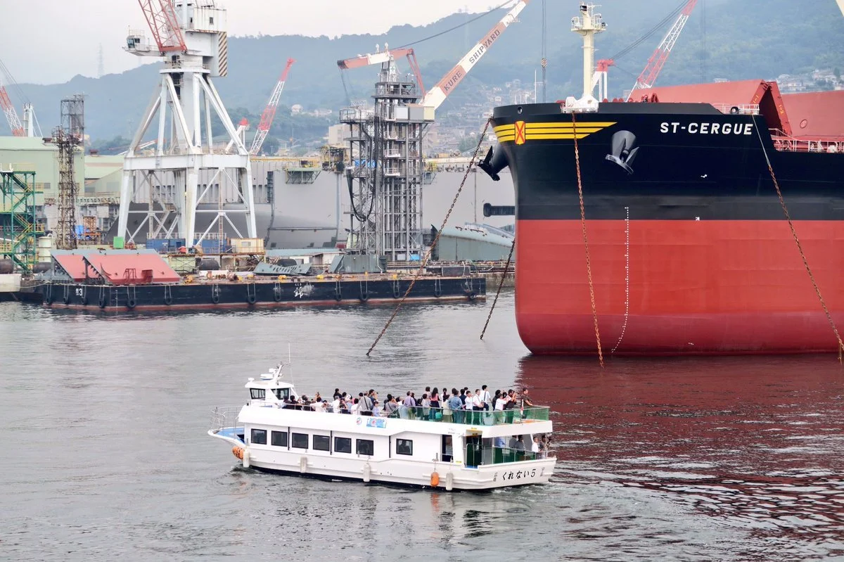 A Kure Bay sightseeing cruise that takes twice the usual time (35 minutes → 70 minutes) to tour the naval vessels, shipyards, and historical and scenic spots of Kure Bay. Departure at 12 PM (approximately 70 minutes, with a guide, limited to 12 people).