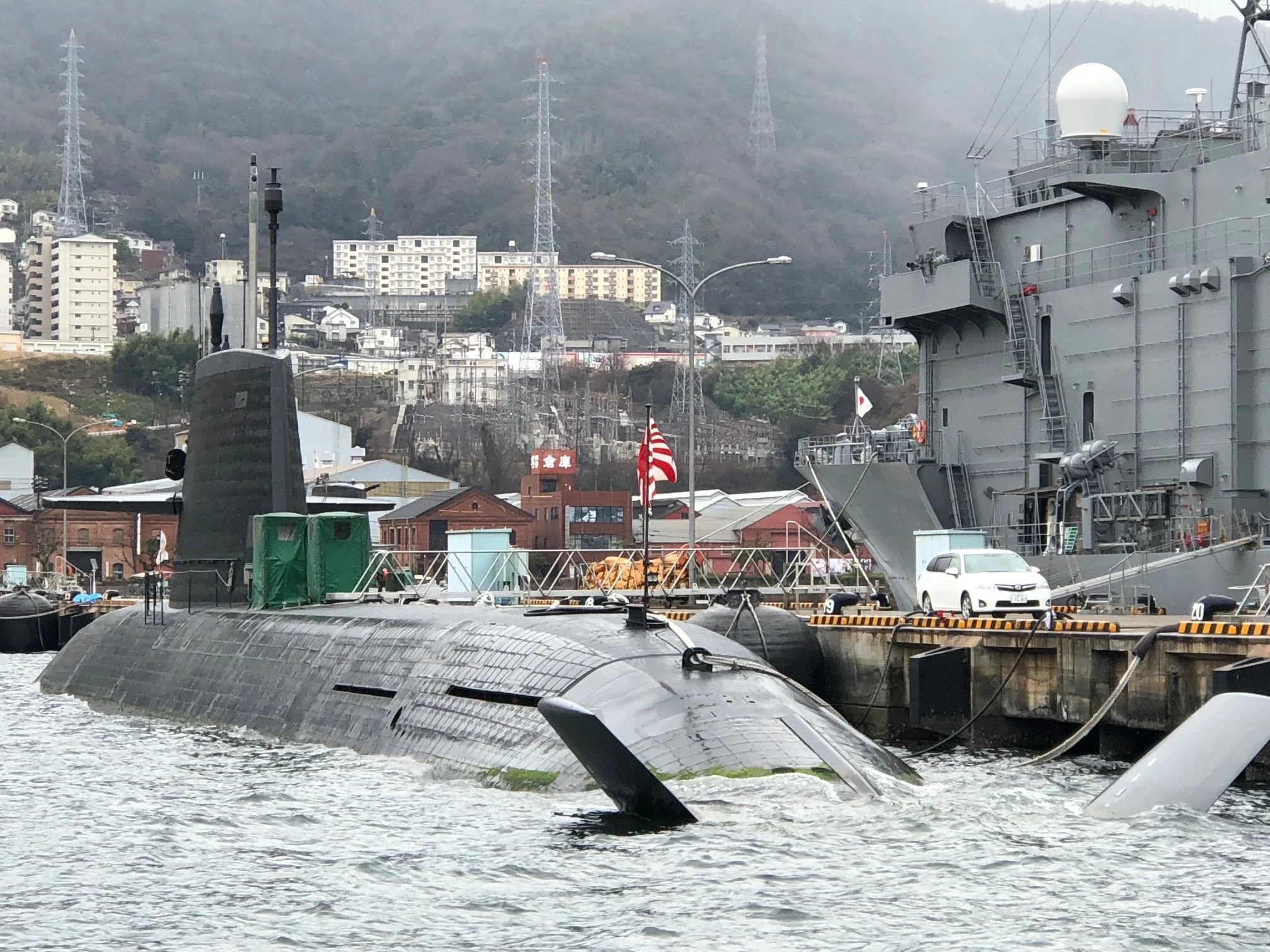 近距离接近停泊在呉湾的护卫舰和潜艇的震撼巡游。