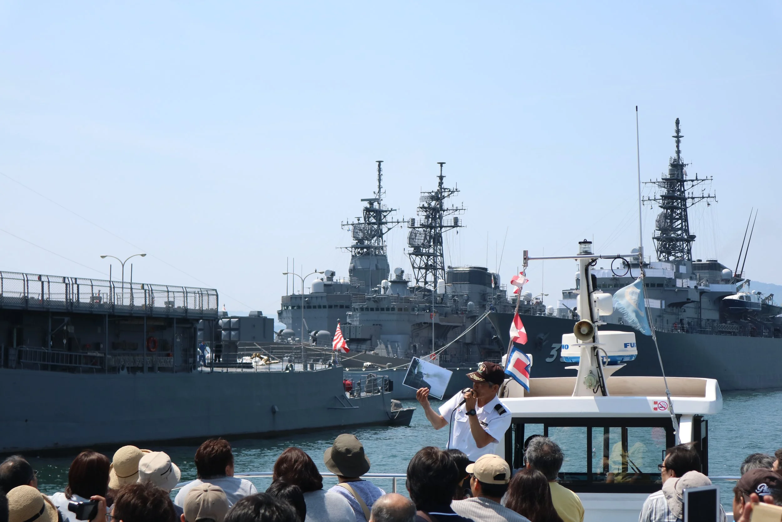 欢迎体验贴近日本海上自卫队各种舰船的震撼游轮巡游。您可以近距离欣赏停泊的护卫舰和潜艇!