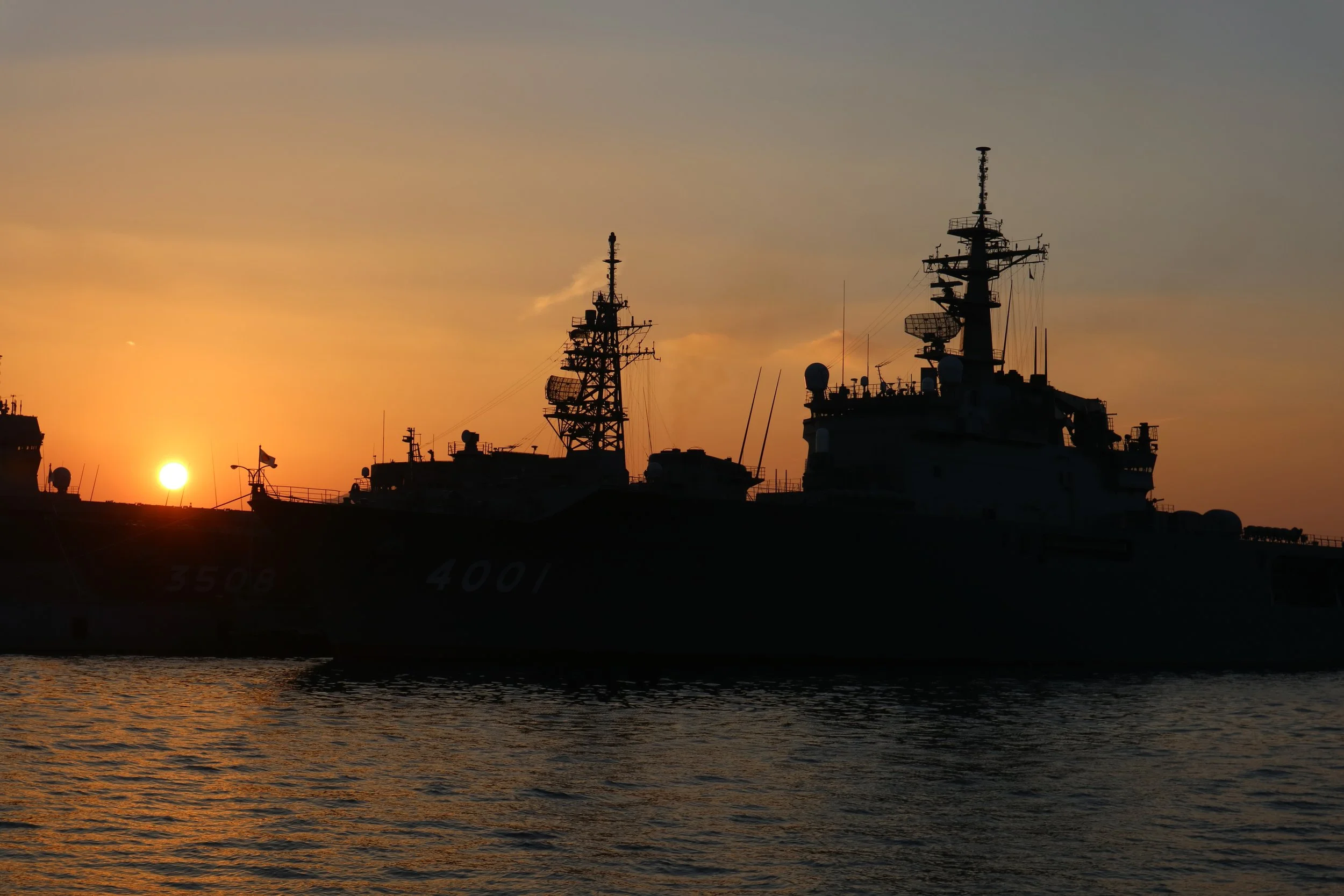 Enjoy a thrilling cruise that takes you close to a variety of Japan Maritime Self-Defense Force ships in Kure Bay. You can get up close to moored escort vessels and submarines! Additionally, we will guide you through one of the world's largest shipyards and the dock remains of the battleship Yamato. On the sunset cruise of Yūgure, as the sun sets, you can witness the lowering of the Self-Defense Force flag on the ships while "Kimigayo" (the Japanese national anthem) is played.