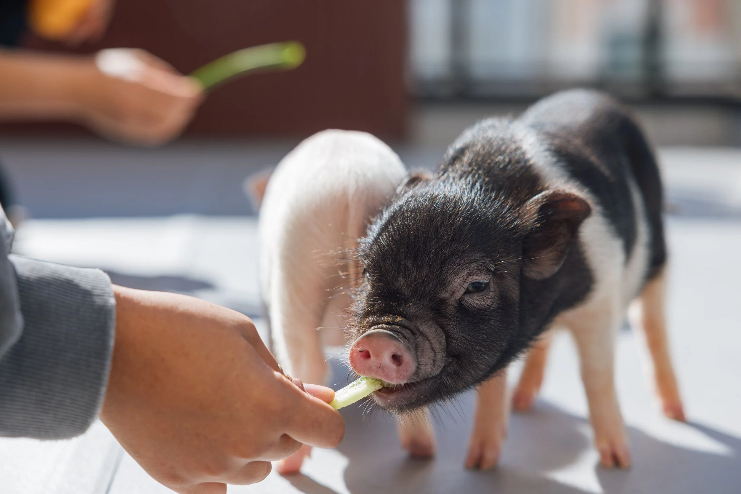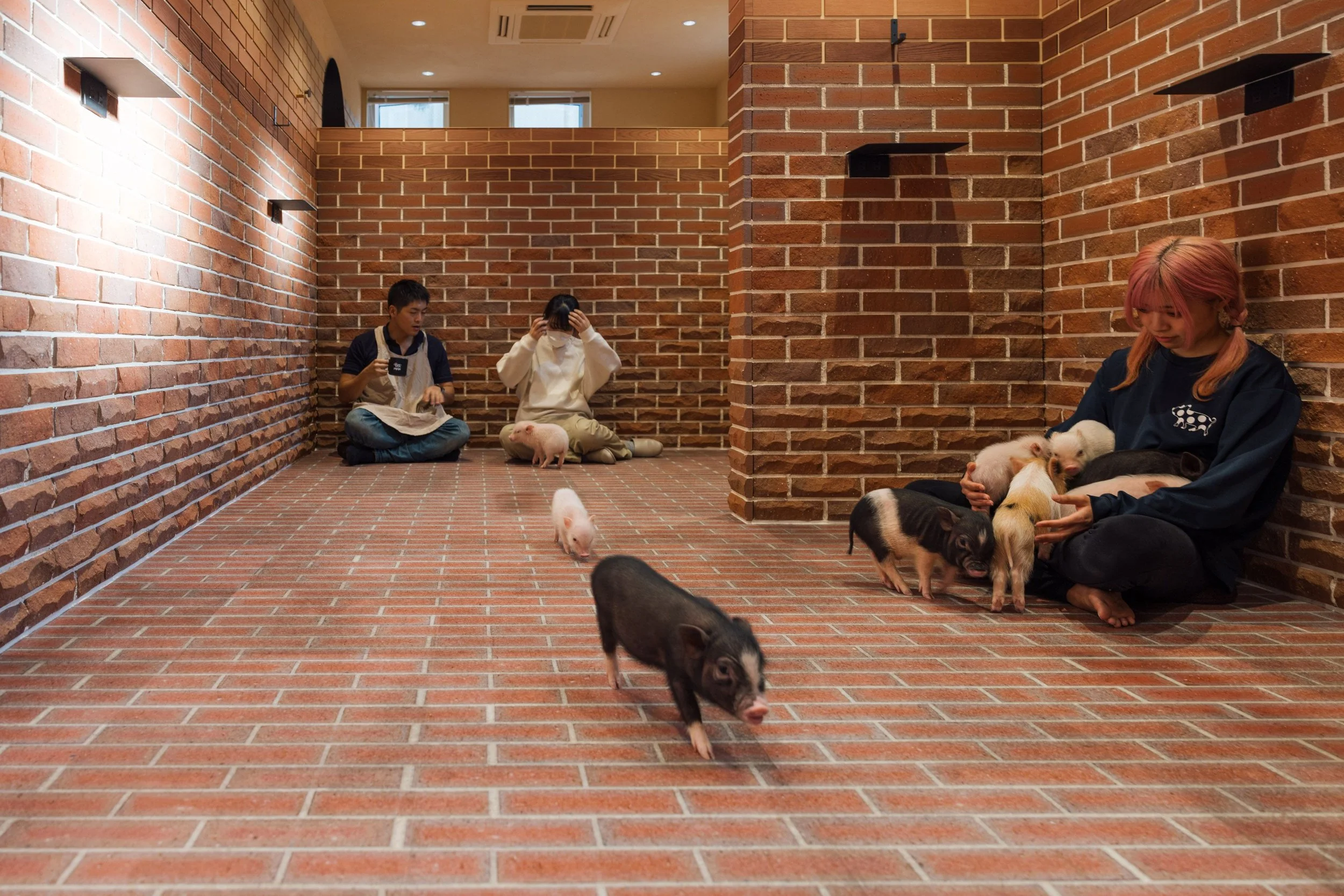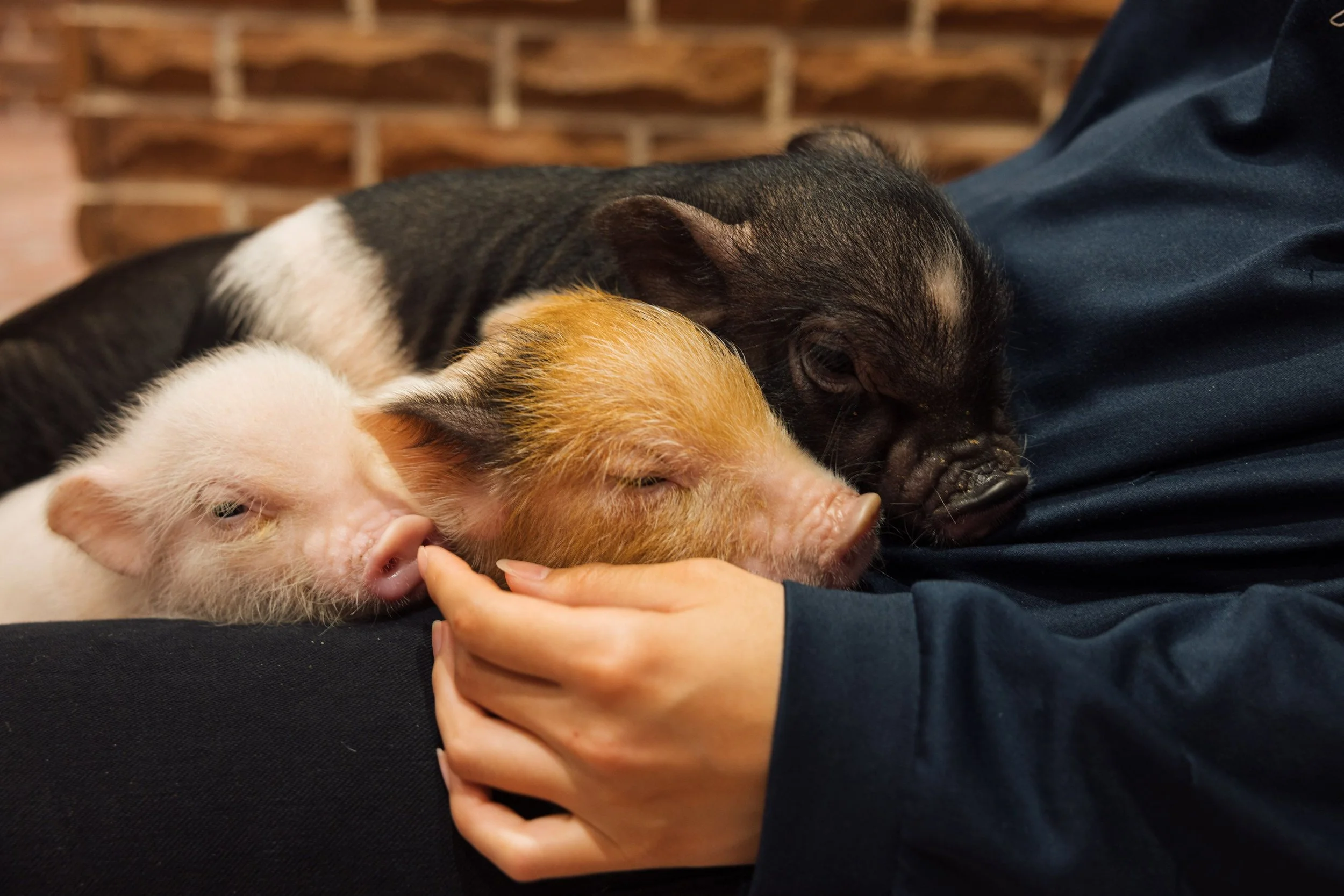 你可以把小猪放在你的腿上并与它互动。 可以在包厢给小猪吃零食,也可以在天台区域喂小猪吃零食。 他们非常友好,会走到你身边并跟你撒娇。