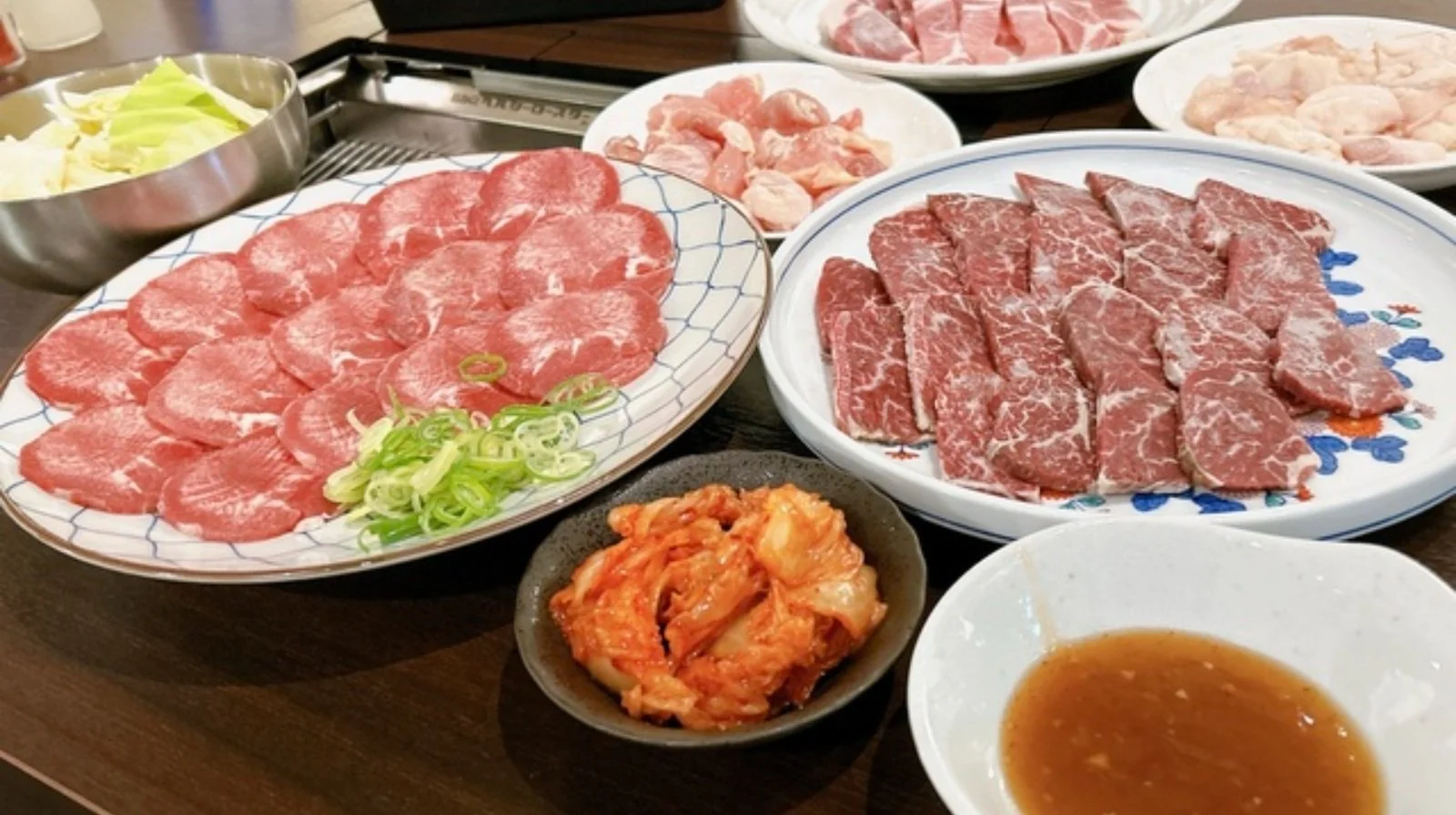 尽情享受黑毛和牛的精华部位,如 Zabuton(肩胛里脊)、牛舌、国产横膈膜肉(Harami)、Ichibo(臀尖肉)、Misuji(肩胛部)。
