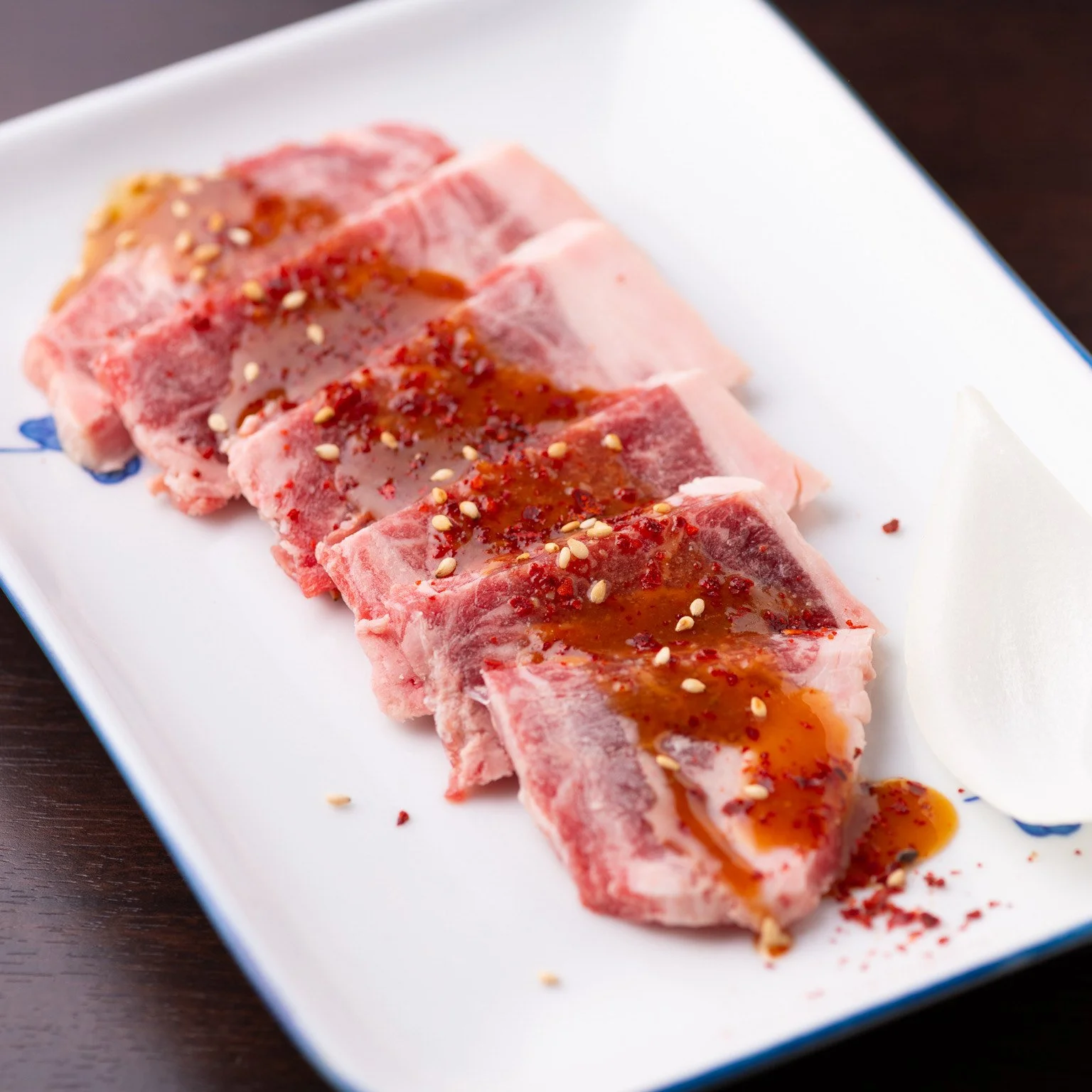 Made with Kuroge Wagyu from Kumamoto, this cut is known for its fine marbling and tenderness. Enjoy it with Sankichi’s melt-in-your-mouth house-made sauce. Grilled on a smokeless roaster, excess fat is reduced, making it lighter and easier to enjoy. Perfect for all ages!