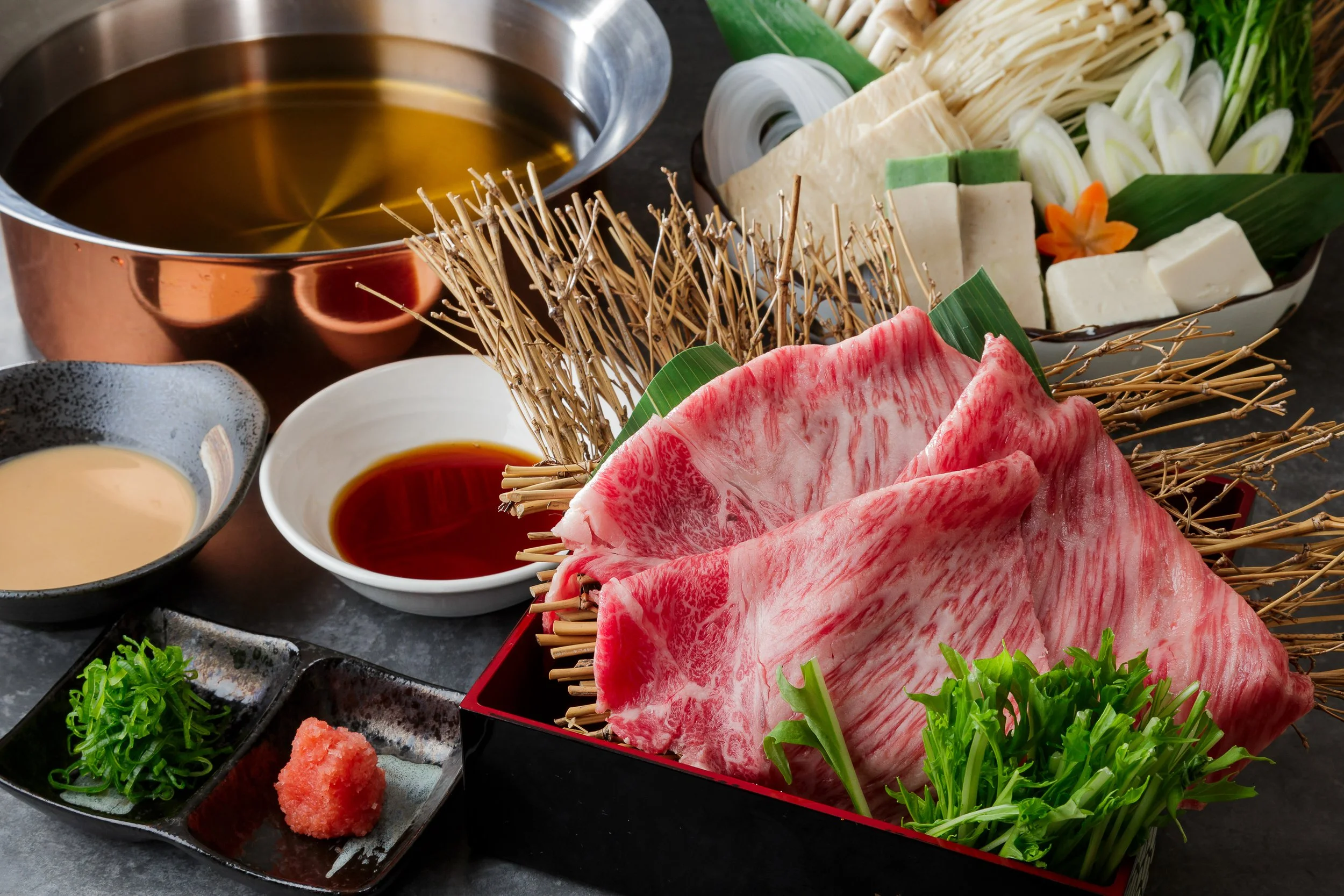 Enjoy carefully selected premium Japanese Black Wagyu, served as shabu-shabu, sukiyaki, or steak.