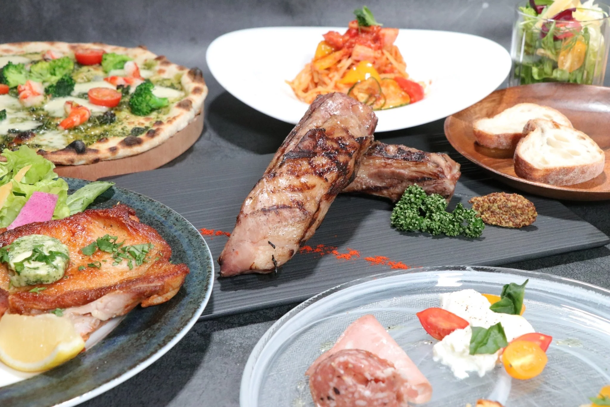 A value-packed dinner course offering a choice of pizza or pasta and a main meat dish, curated from the most popular selections of Italian Café GK.