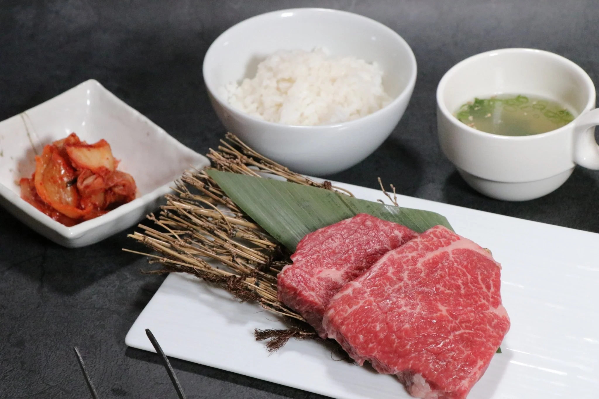 A value lunch set featuring Kobe Takami beef steak cuts.