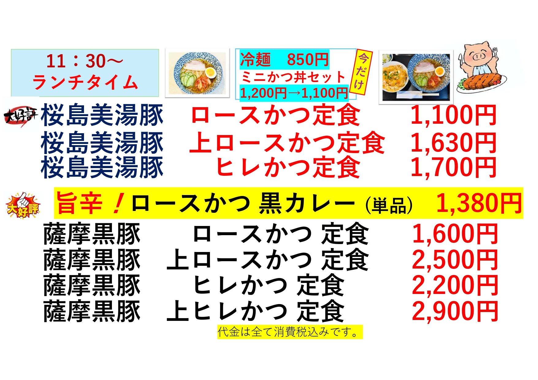 Enjoy a variety of satisfying meals such as crispy mixed-fried dishes, juicy pork steak, and Kagoshima’s famous black curry or Turkish rice.