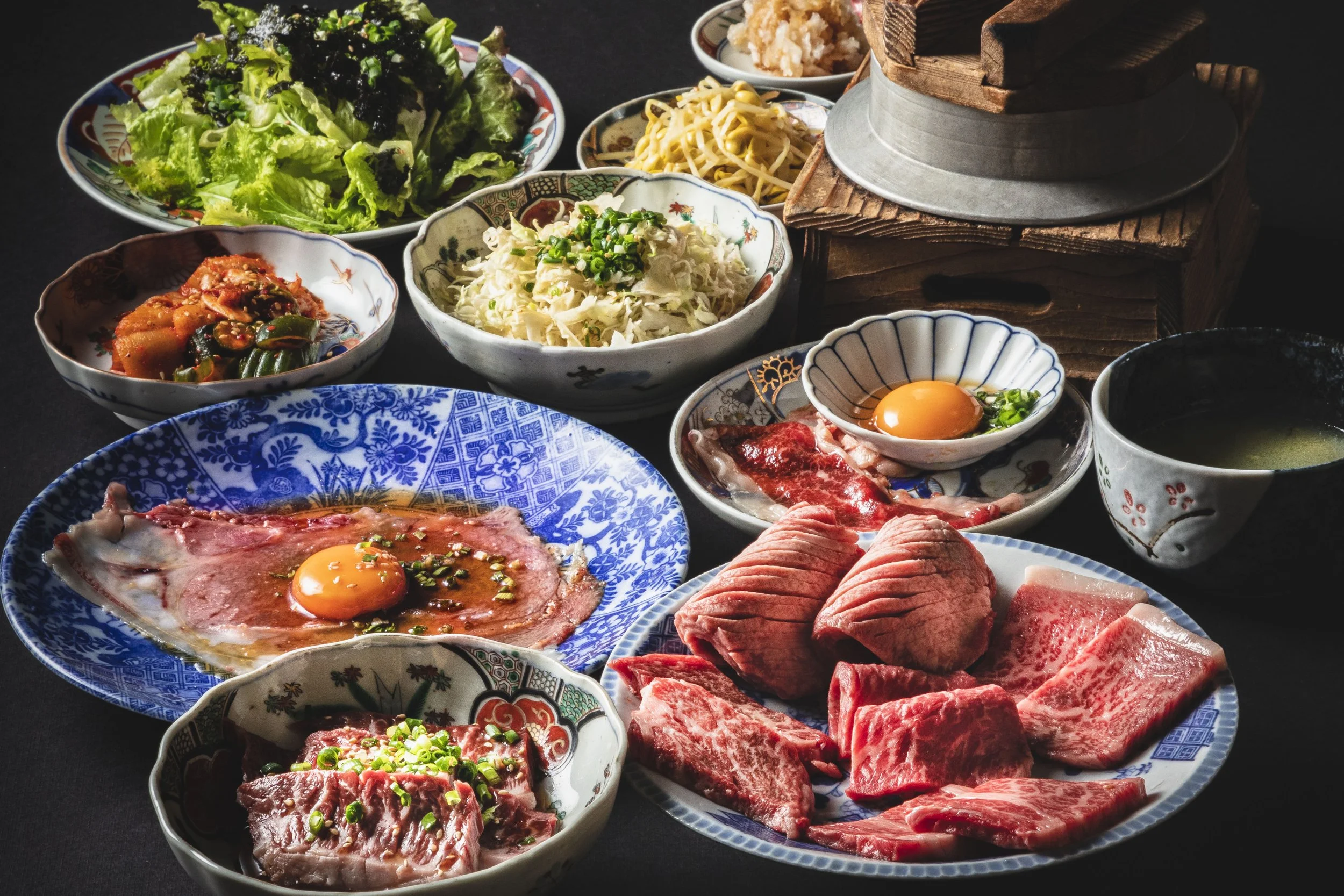 大分和牛的9种稀有部位拼盘。